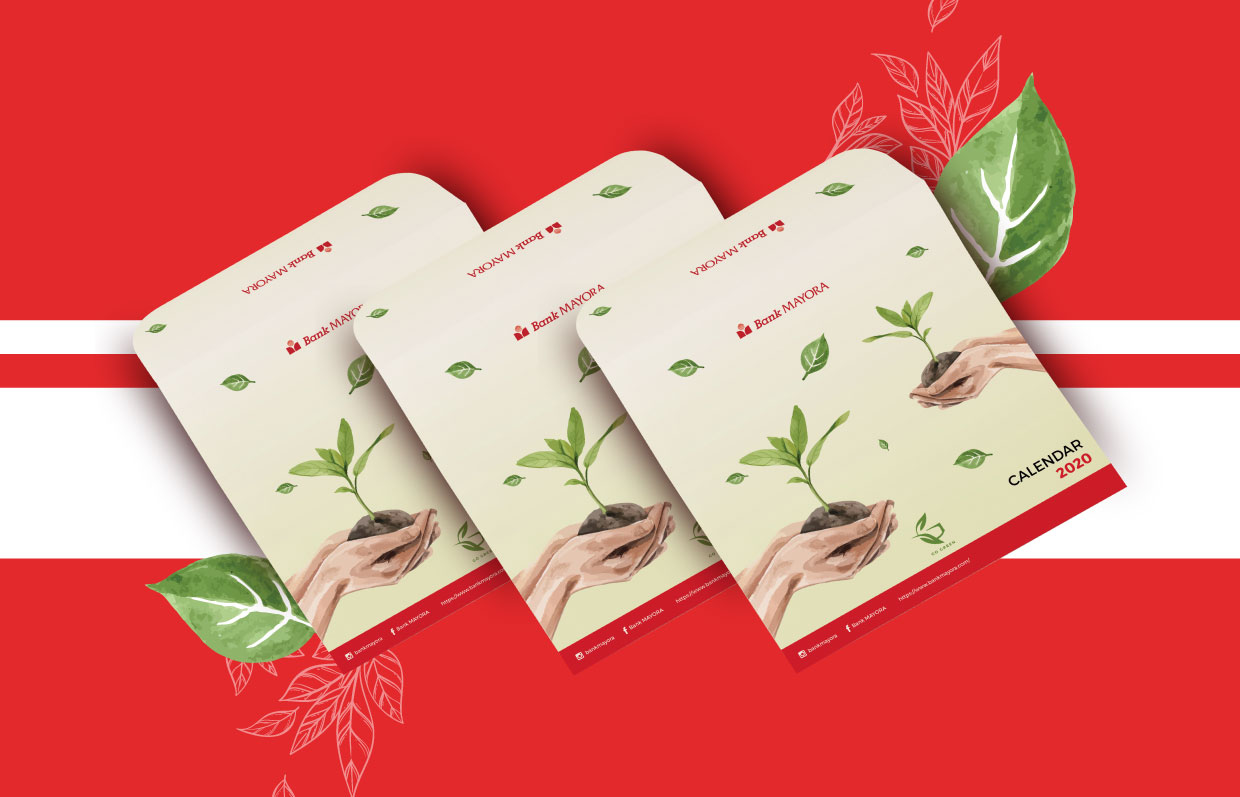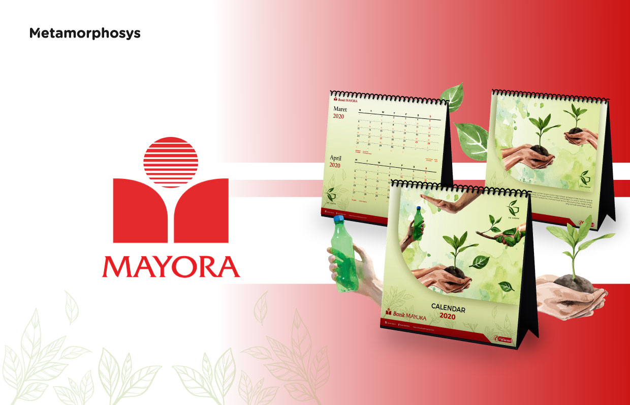 Do not stop there, Go Green also became a theme in the development and design of the Mayora 2020 calendar which was carried out by Metamorphosys Studio. In addition to the calendar, Metamorphosys Studio is also trusted to design Bank Mayora’s agenda by using black and red, in accordance with the colors used by Bank Mayora.